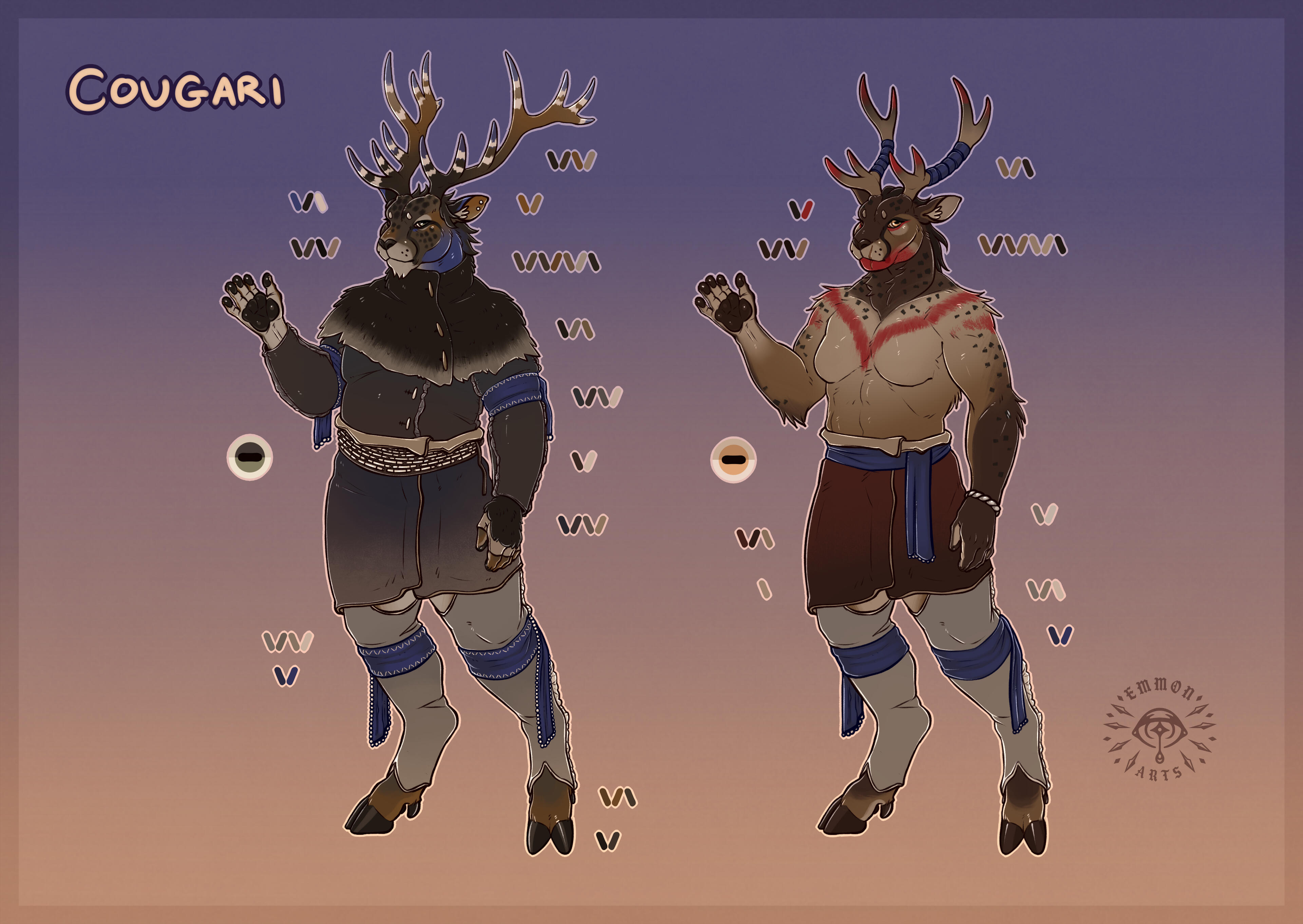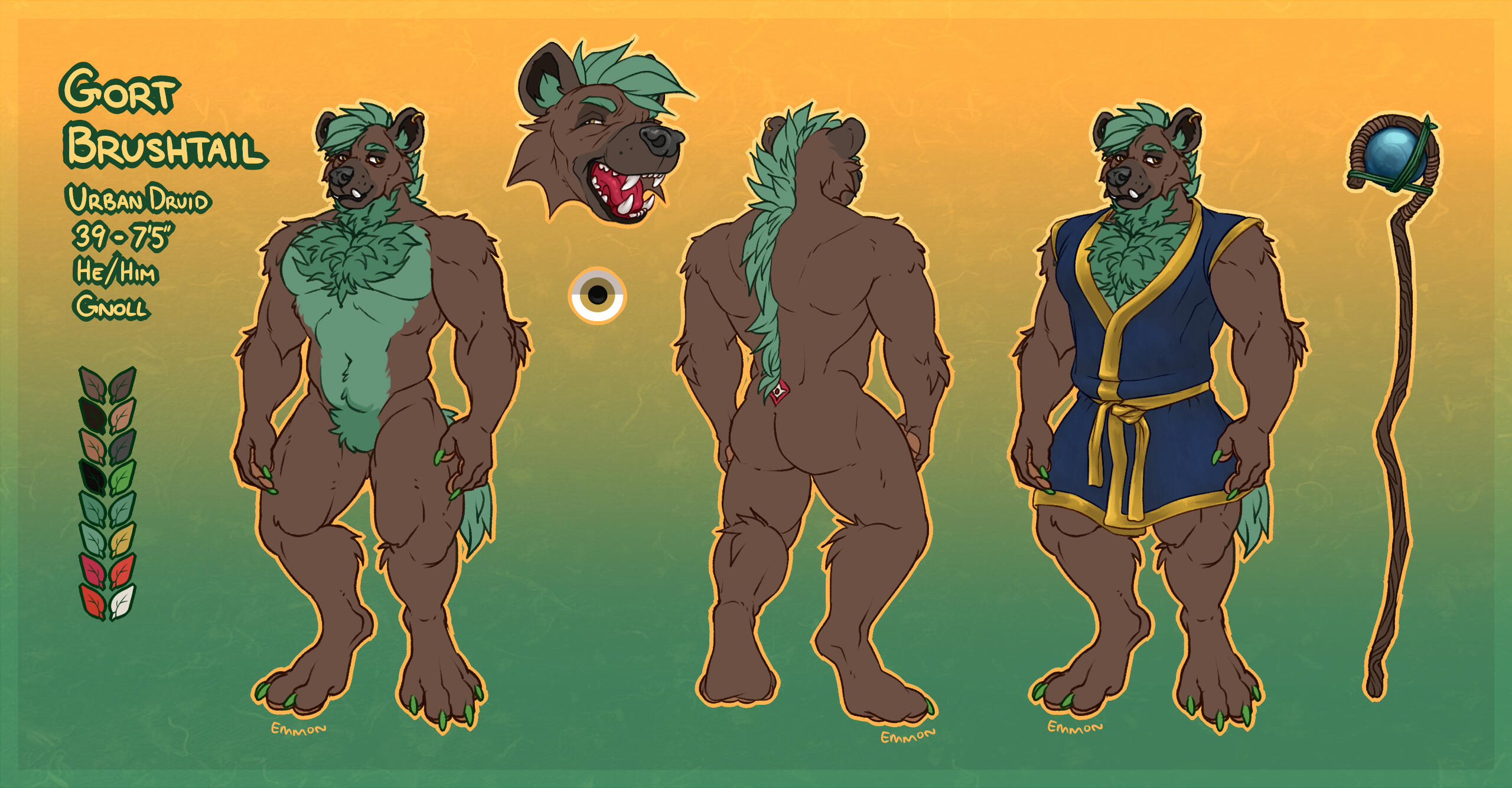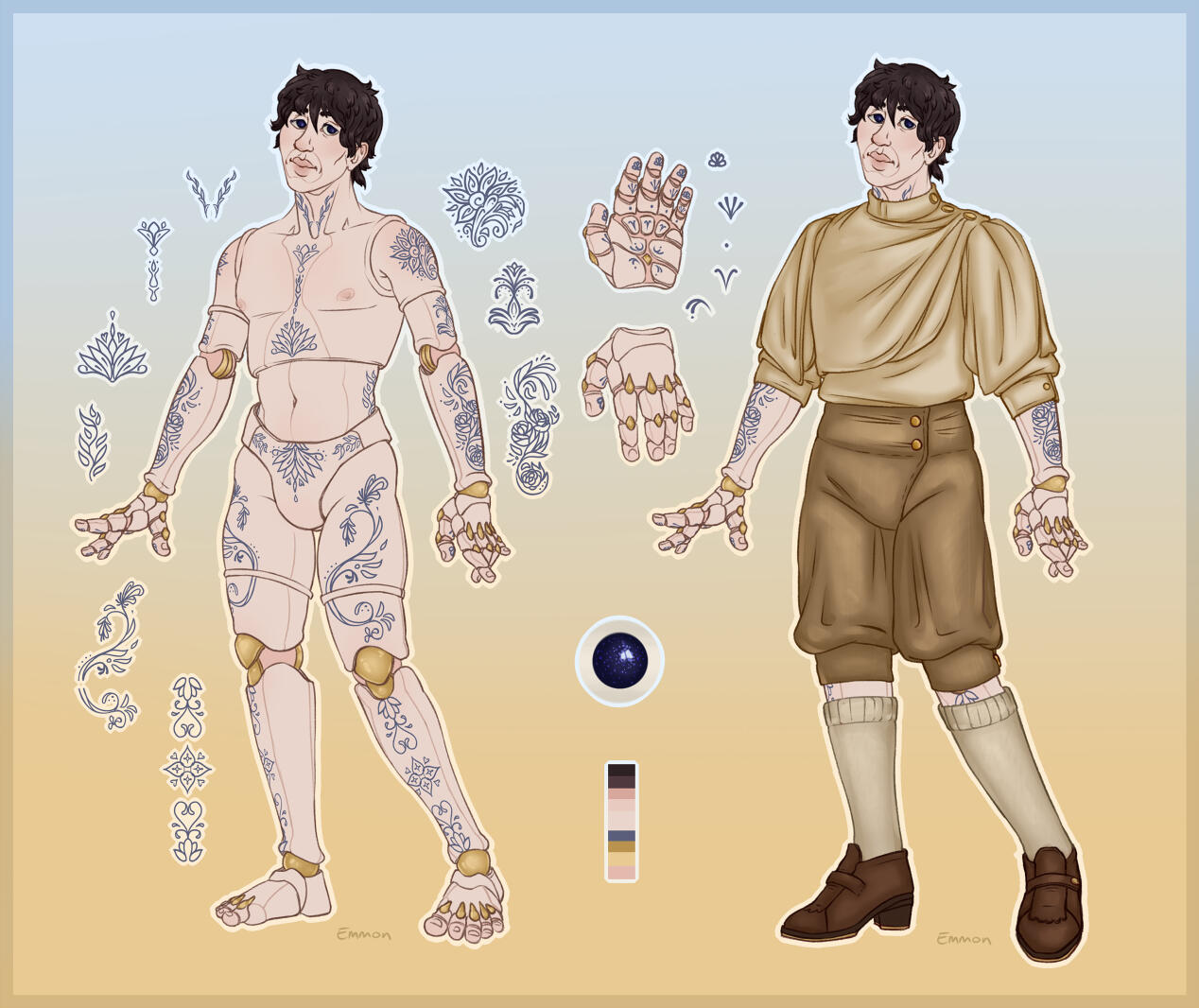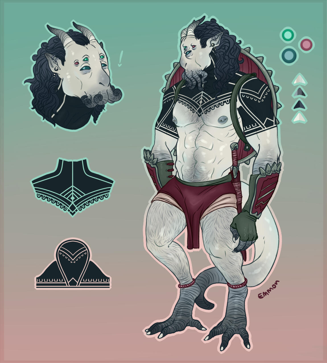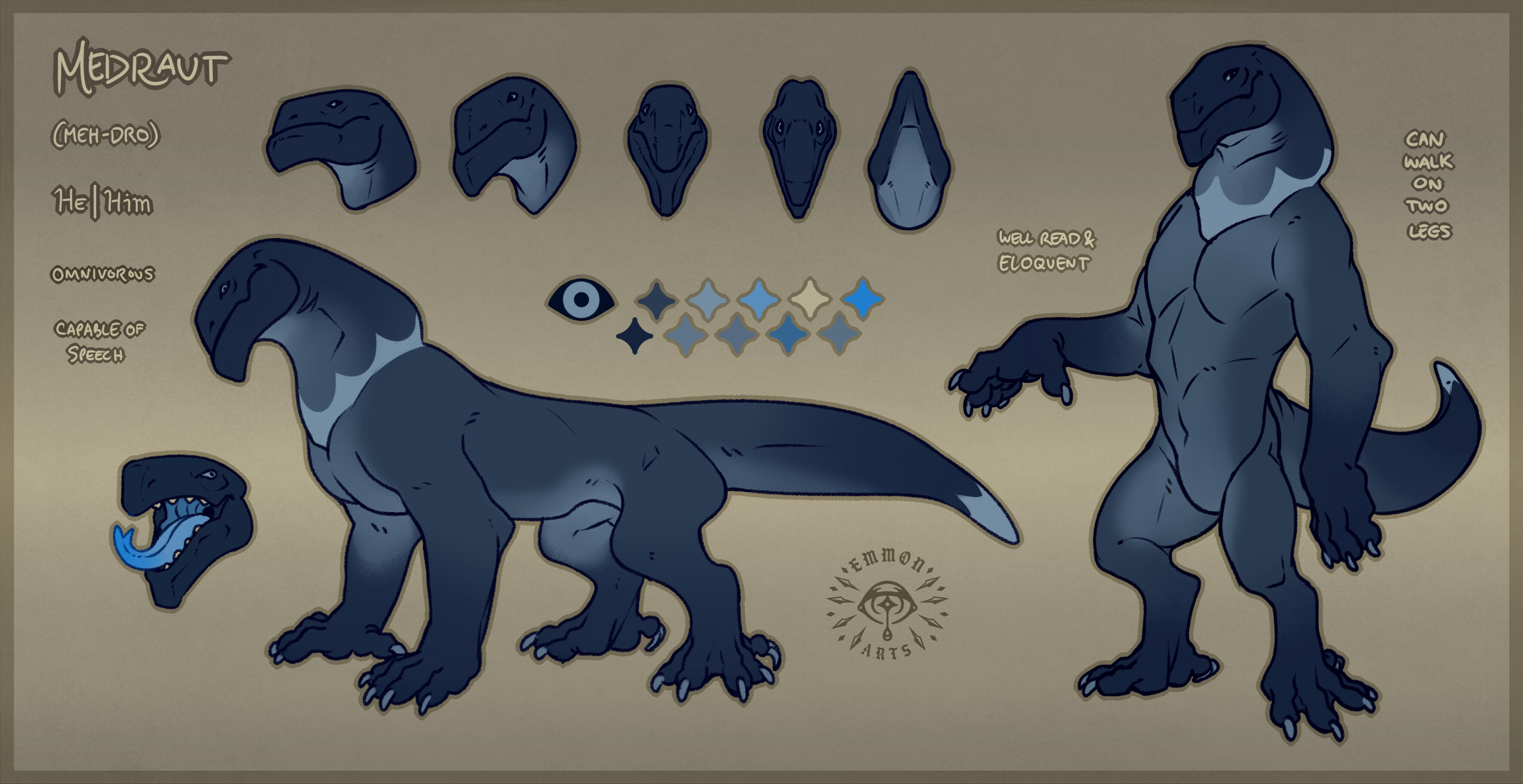 All sheets include an eye reference, a palette, and some basic flavour text