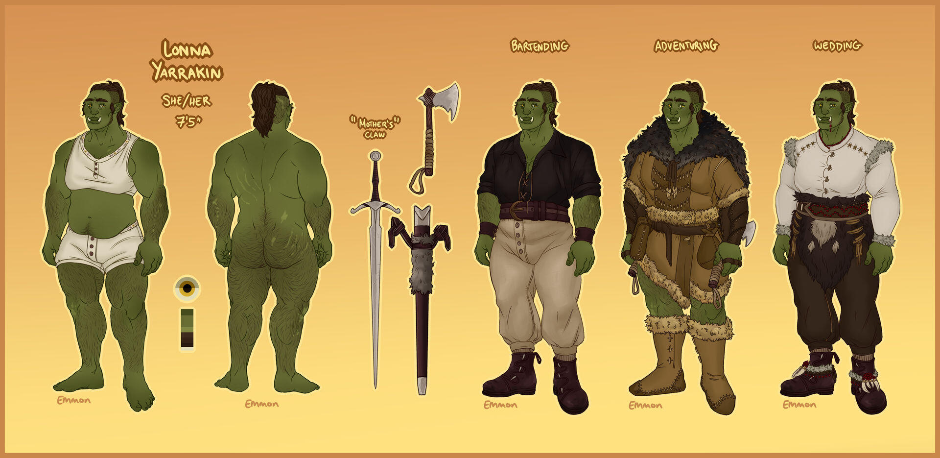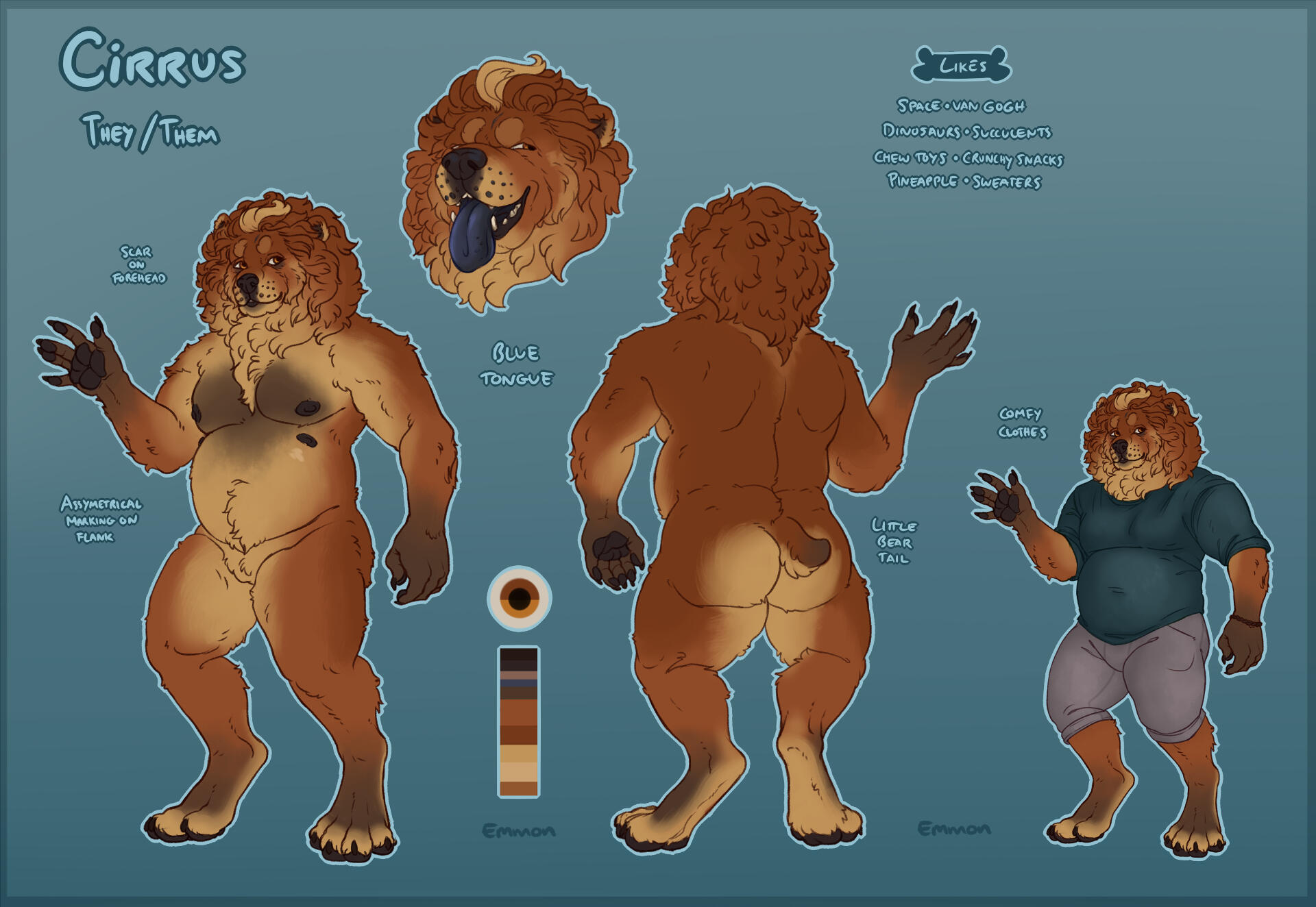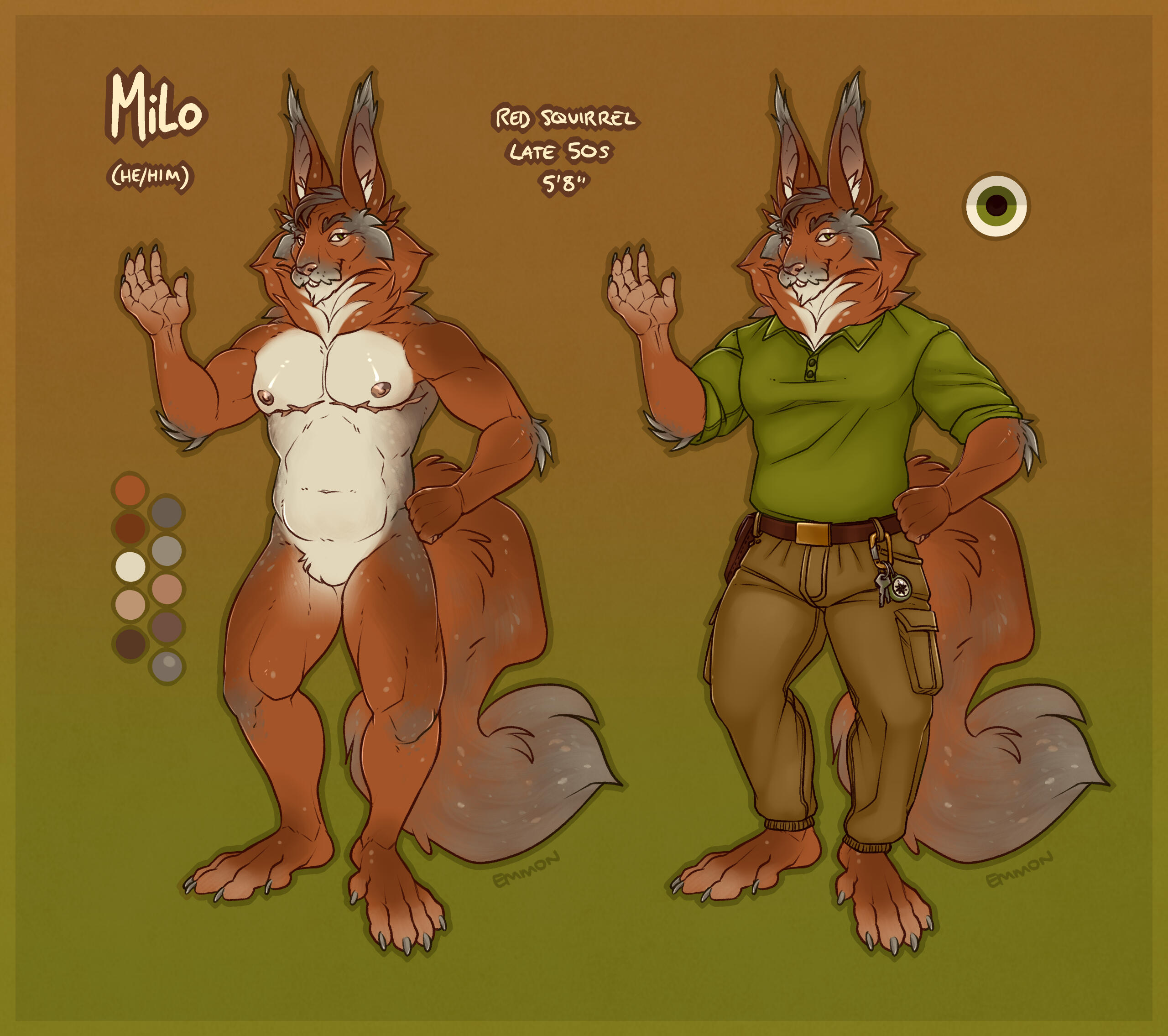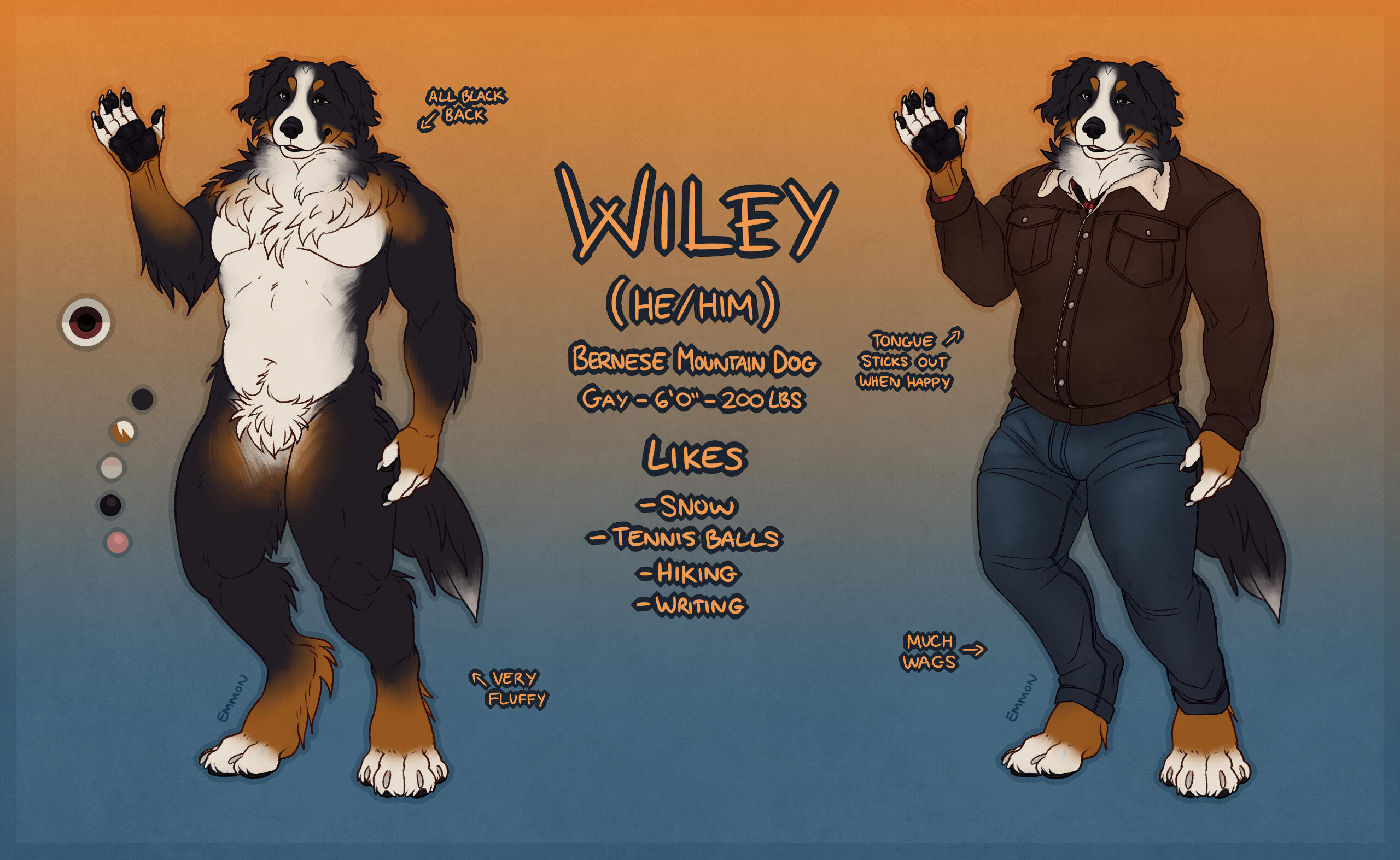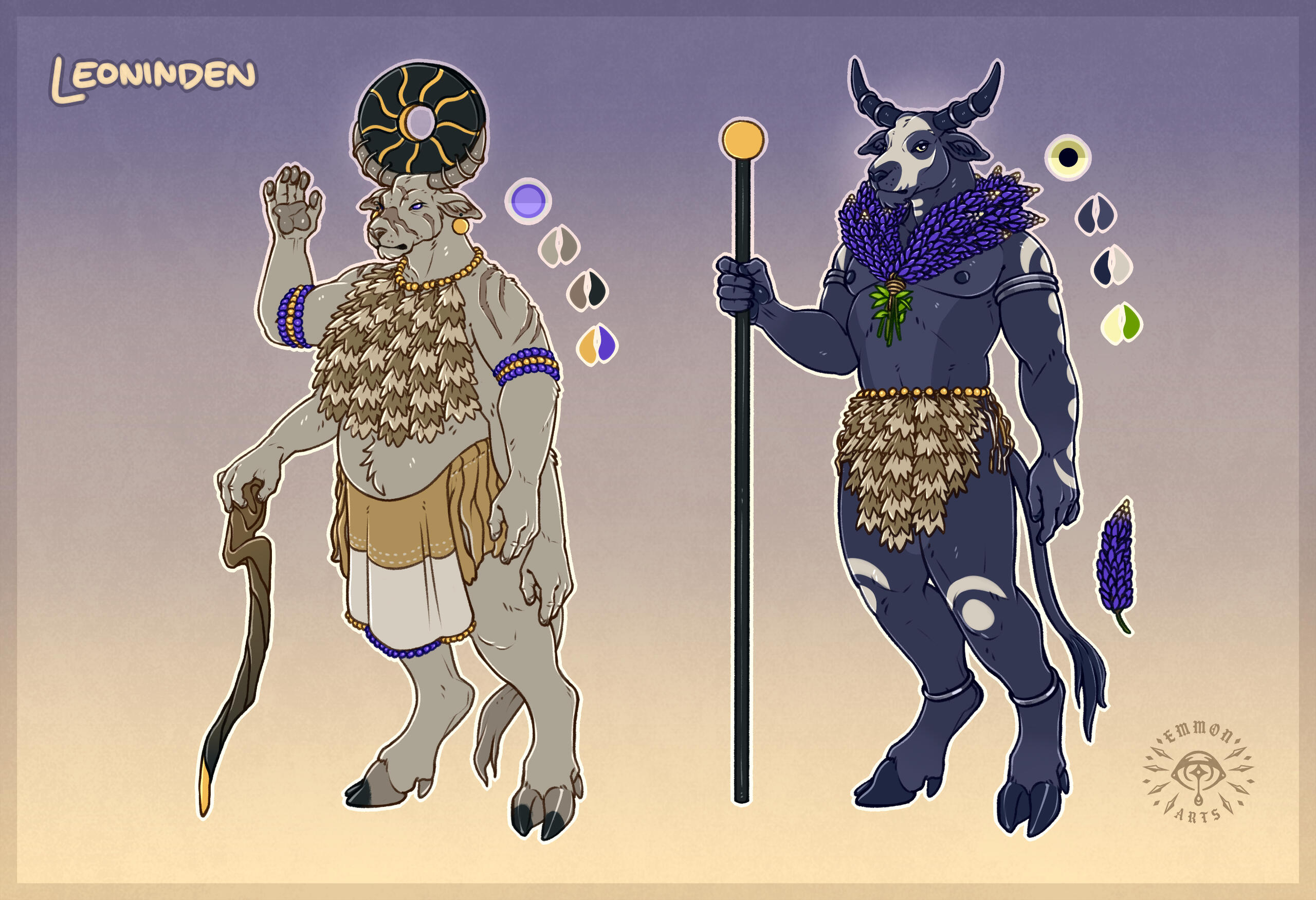 All sheets include an eye reference, a palette, and some basic flavour text